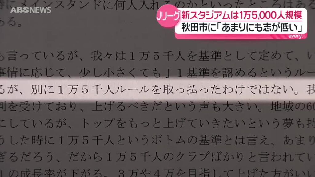 【サッカー】秋田市の新スタジアム Jリーグ側「上限1万人というのは、あまりにも志が低い」「1万5,000人規模が必要」と主張