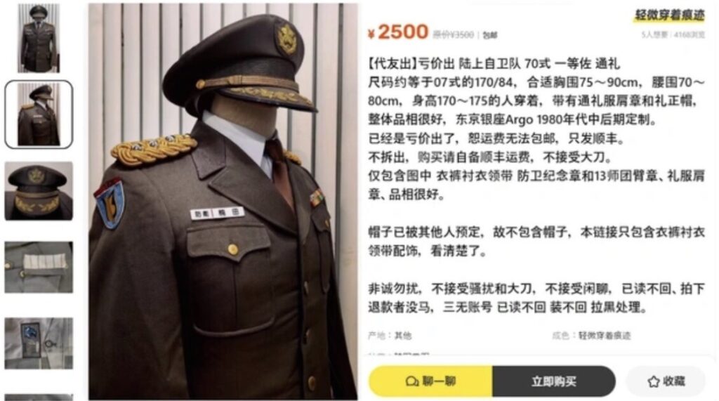 1: 仮面ウニダー ★ 2026/01/03(土) 07:15:58.47 ID:yX/oE0qK 緊張高まる日中関係の裏で、中国のフリマアプリで自衛隊や警察の制服などが「正規品」として多数出品される現状が明らかになった。 防衛省も流出の事実を認めるなか、悪用リスクについてリポ... -