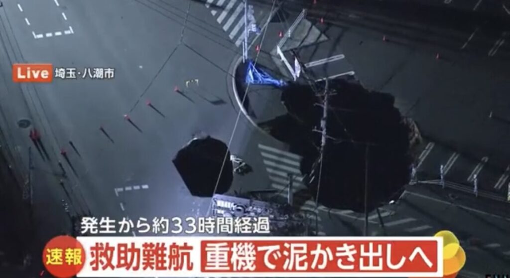 【続報】道路陥没トラック転落事故発生から33時間経過…救助活動は難航 車内に取り残された74歳運転手男性の安否は不明 ガス漏れやガス管損傷・停電の情報なし