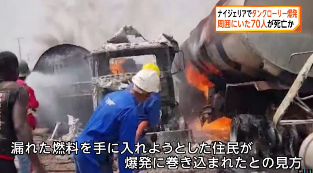 ナイジェリアでタンクローリーが横転・爆発 少なくとも70人死亡 流出した燃料集めるため多くの住民が現場に