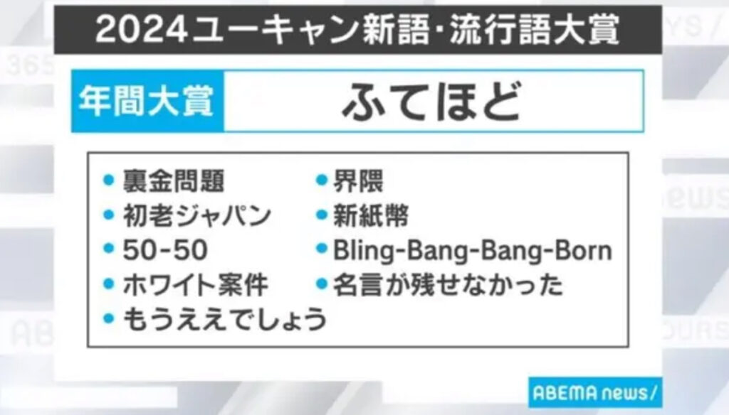 年間大賞は「ふてほど」に決定 2024 ユーキャン新語・流行語大賞