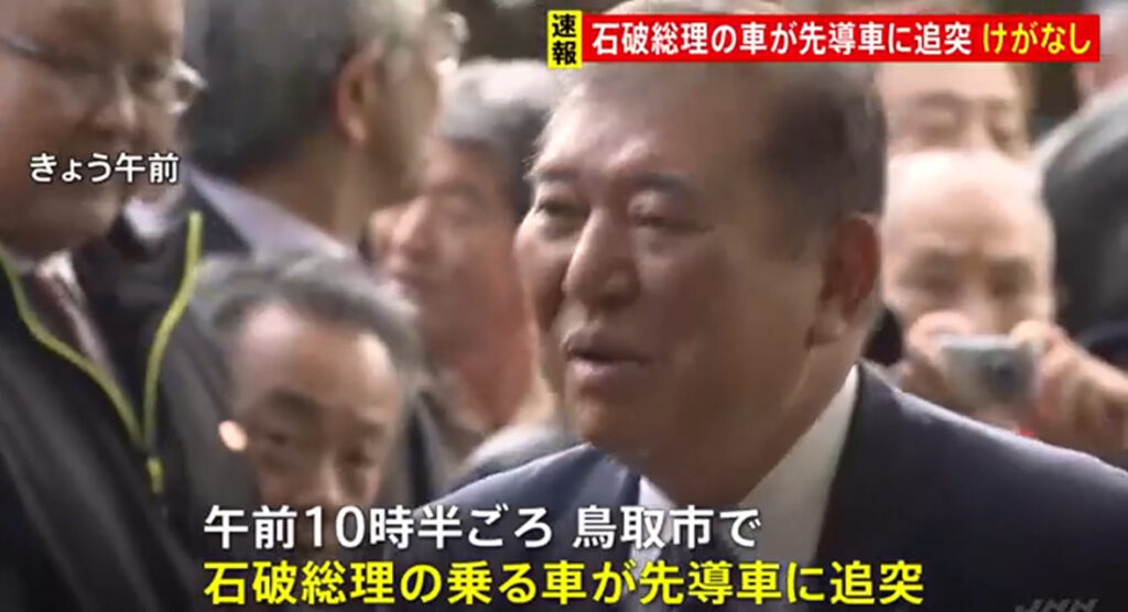 1: Hitzeschleier ★ ころころ 2024/12/01(日) 12:01:43.67 ID:pJjGfDzl9 午前10時半ごろ、鳥取市で、石破総理の乗る車が先導する車に追突しました。 石破総理は、けさ地元・鳥取で神社に参拝するなどしたあと、東京に戻るため鳥取空港に向かう途中だったと... -