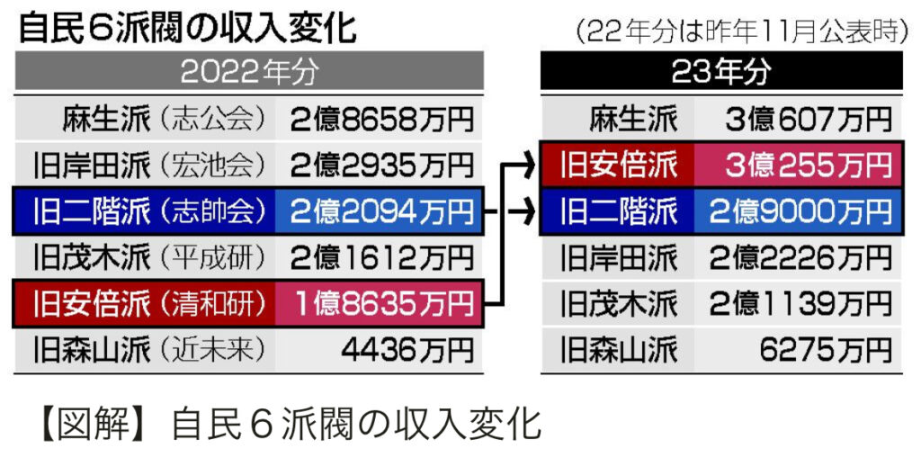旧安倍派、パーティー収入2億円超 裏金処理中止で2.2倍に―二階派も大幅増・政治資金収支報告書
