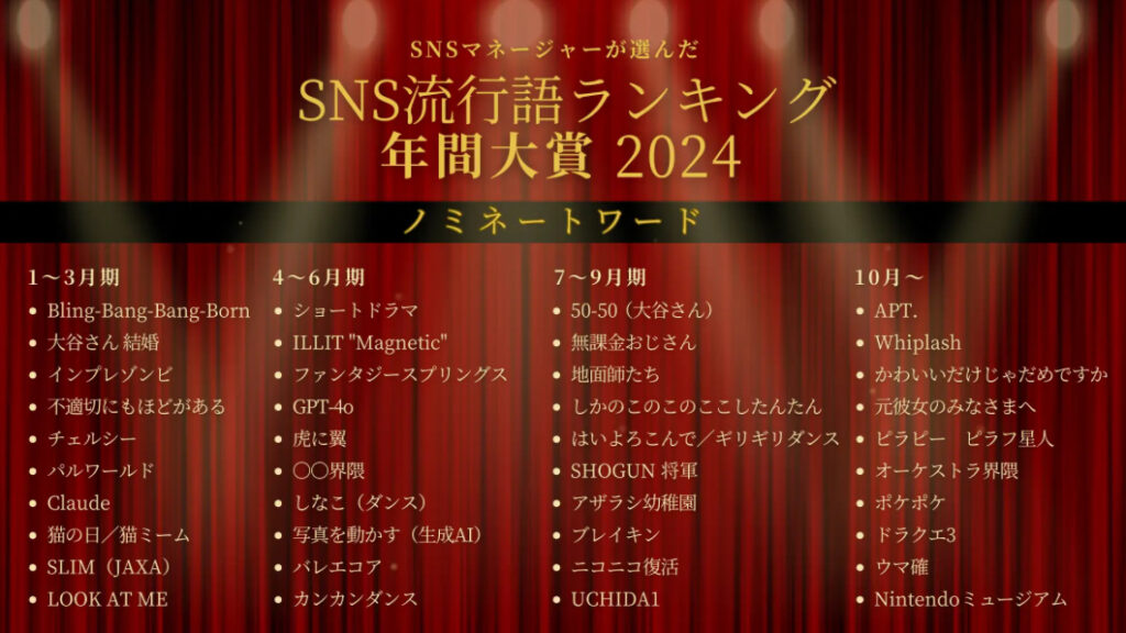 2024年SNS流行語ランキング 年間大賞ノミネートワード発表