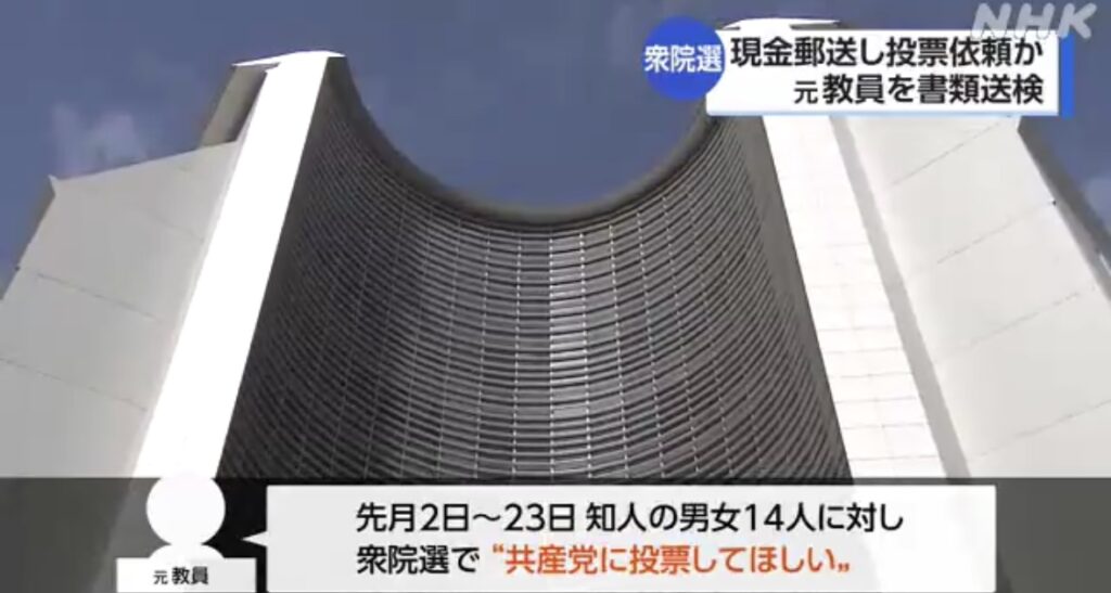 男女14人に現金を送りつけて投票を依頼した女を書類送検…