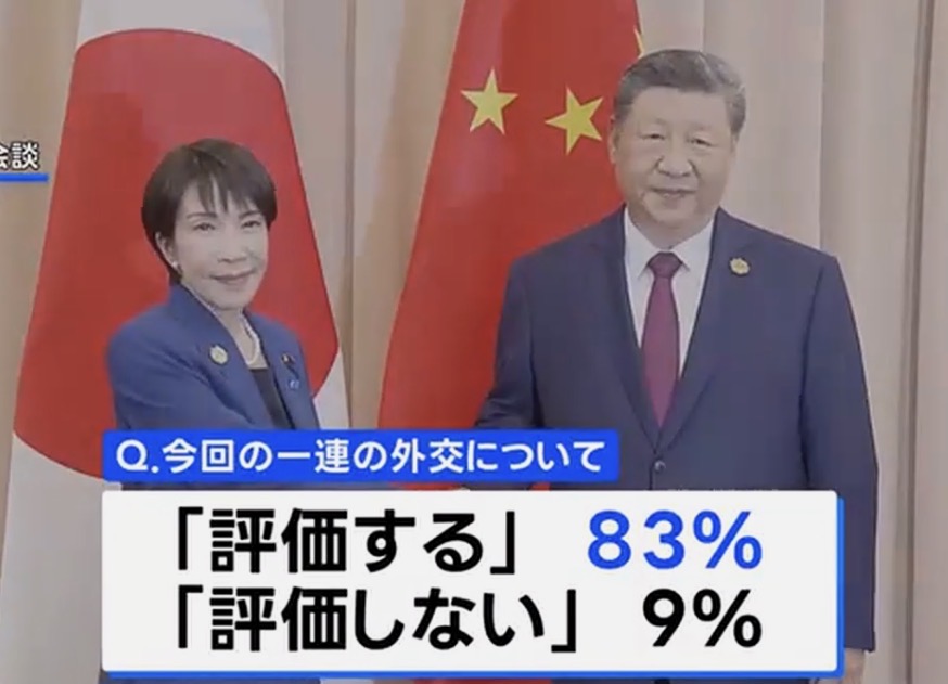 1: どどん ★ 2025/11/02(日) 23:02:17.76 ID:UIkFsOb/9 最新のJNNの世論調査で、高市内閣の支持率が先月の石破内閣の支持率から38.3ポイント上昇して、82.0%だったことがわかりました。一方、「支持しない」と答えた人は先月から38.7ポイント下落して、14.... -