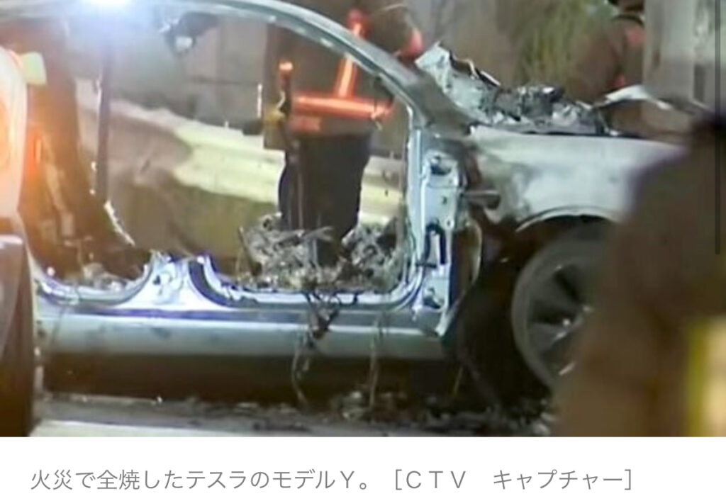 テスラ車が事故→車体が炎上→ドアも窓も開けることができず4人焼死 カナダ