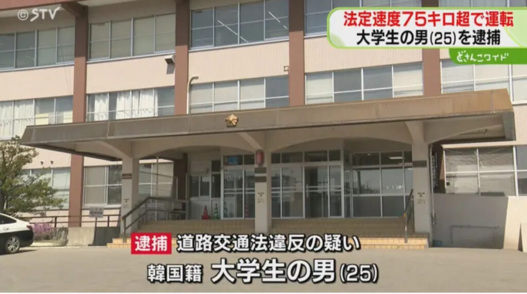 【北海道北見市】 法定速度を75キロ超える時速135キロで走行 韓国籍の大学生を現行犯逮捕