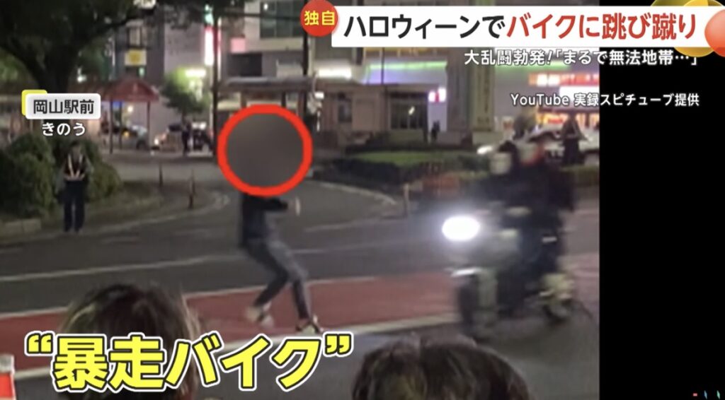 1: シャチ ★ 2024/11/01(金) 22:01:03.16 ID:s3CvF7/39 沿道から何かを見つめる人たち。 10月31日、岡山駅前で目撃されたのは、爆音をとどろかせながら暴走するバイクに駆け寄ってきた男性がキック、そして警察官ともみ合いの大乱闘です。 楽しいはずのイ...