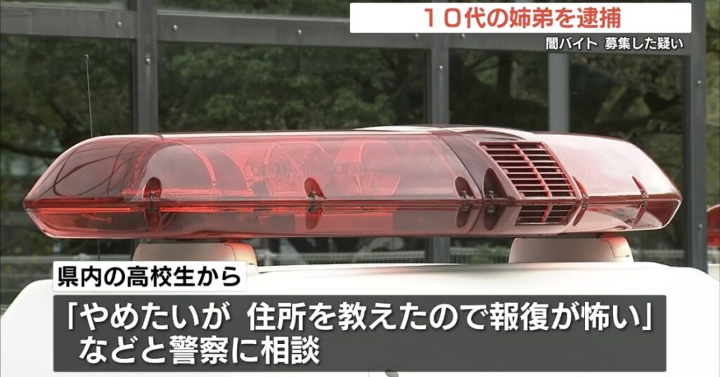 【熊本】「闇バイト」募集容疑で10代姉弟を逮捕 SNSに「短期間で高収入 連絡ください」 → 応募した高校生が警察相談
