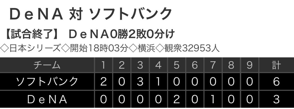 【野球】日本シリーズ第2戦 DB 3-6 H [10/27] ホークス連勝 山川先制2ラン、モイネロ7回途中1失点 DeNA連敗