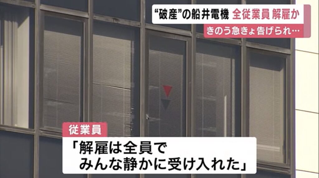 破産開始手続き開始の日に全従業員2000人解雇 経営破綻の船井電機