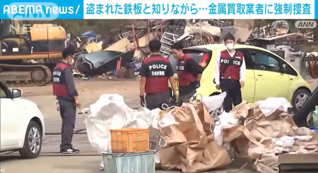 【茨城】 盗まれた鉄板を買い取った疑いで業者に強制捜査 代表の中国籍の男を逮捕