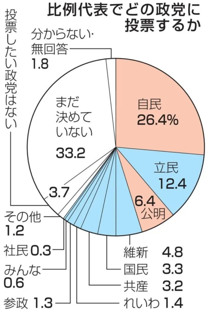 比例自民26%、立民12% 裏金考慮65%、共同通信調査