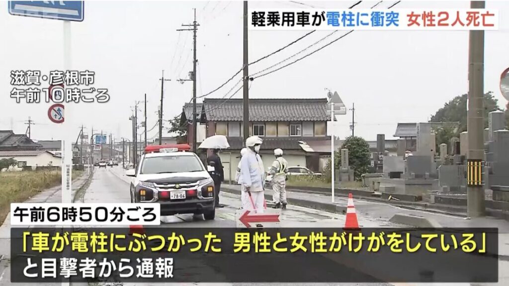 【滋賀】軽乗用車が電柱に衝突 10代とみられる女性2人が死亡 運転の20歳男性は肋骨を折る重傷 彦根市