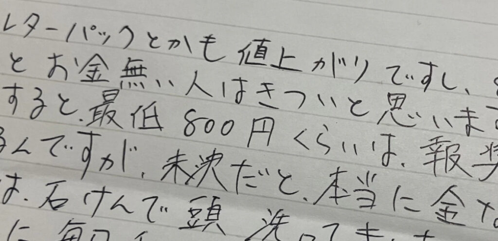 1: 少考さん ★ 2024/10/05(土) 17:45:26.17 ID:RqglYHpi9 受刑者「正直きつい」 10月からの郵便料金値上げ、塀の中から悲鳴の声 物価高も追い打ち - 弁護士ドットコム https://www.bengo4.com/c_18/n_17995/一宮俊介 2024年10月05日 10時03分 10月1日か... -