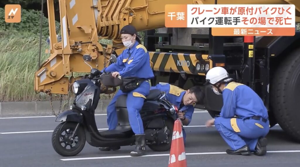 【速報】クレーン車が目の前の原付バイクひいて1人死亡 クレーン部分でバイク見えなかったか クレーン車運転手を過失運転致死の疑いで現行犯逮捕 千葉市・美浜区