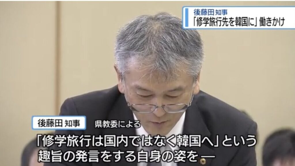 1: ラグドール(東京都) [TH] 2025/12/11(木) 19:29:04.74 ID:jI5BD0TP0● BE:123322212-PLT(14121) sssp://img.5ch.net/ico/pc3.gif 県教育委員会は12月11日、後藤田知事が高校生を通じて、修学旅行先を韓国にするよう学校に働きかける事案があったことを明... -