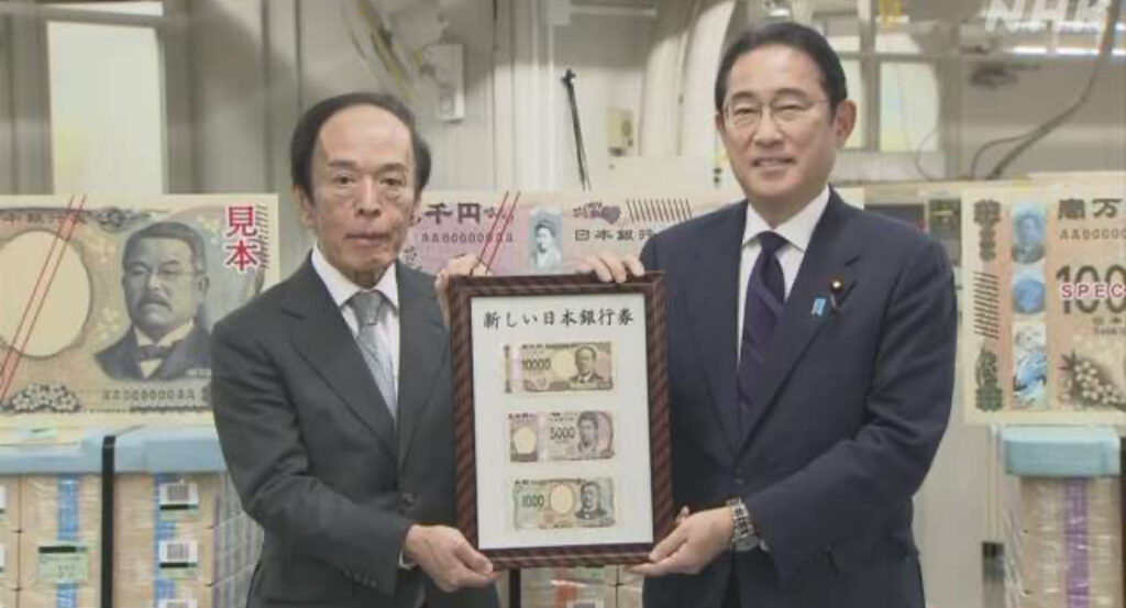 岸田首相、新紙幣発行「経済に元気を期待」 日銀を訪問