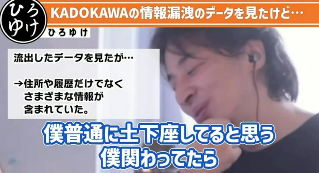 ひろゆき「KADOKAWAの情報漏洩データDLしたら、あらゆる個人情報が丸裸だった。マジで土下座もの」