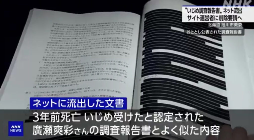 【北海道】 旭川 ネットにいじめ調査報告書と似た内容 削除要請へ