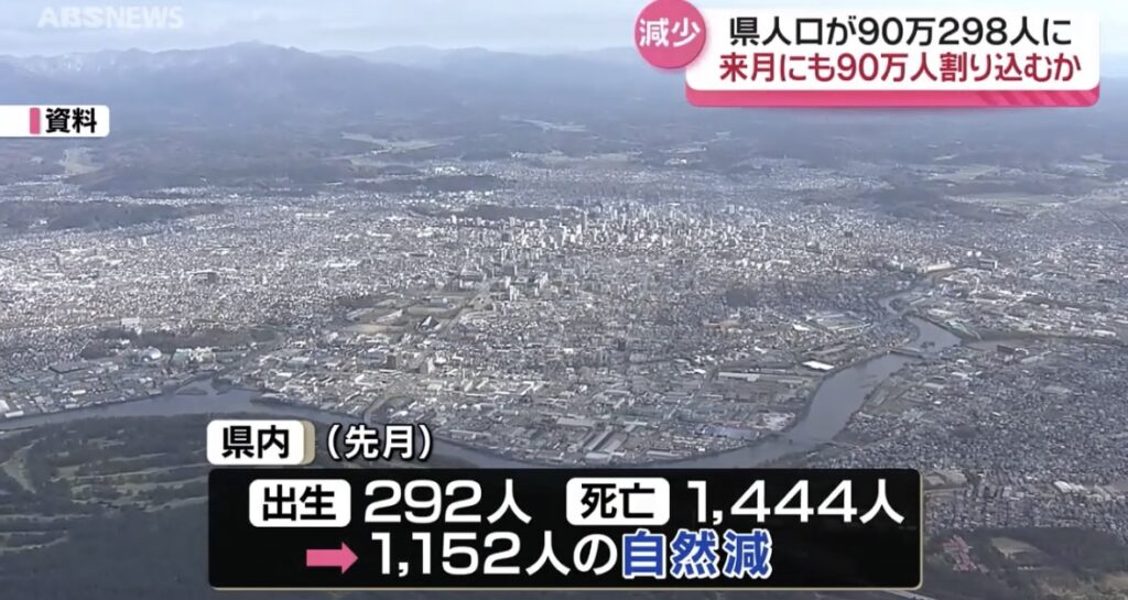 秋田県の人口 来月にも90万人割り込む見通し 減少スピード加速止まらず
