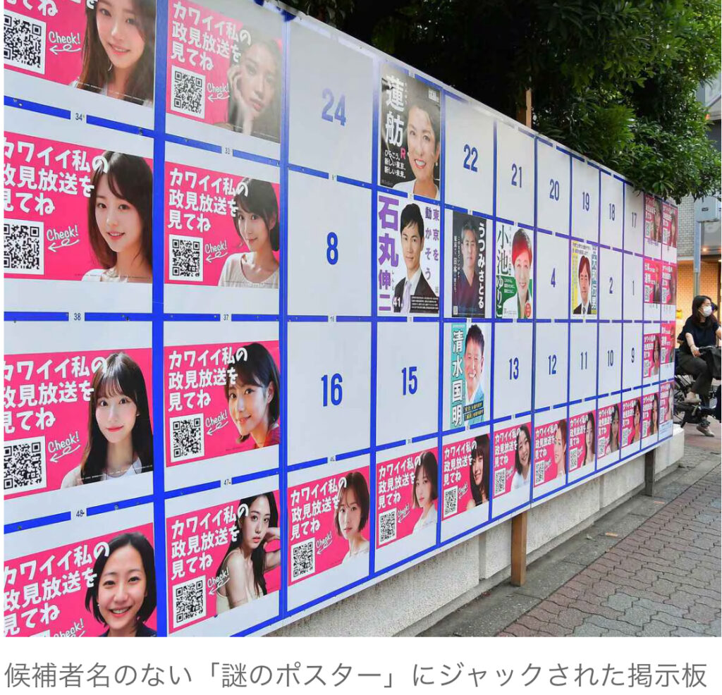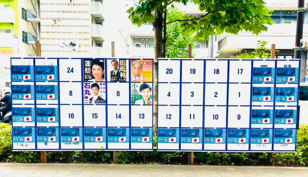 【都知事選】「竹島は日本の領土」…N国党員、朝鮮学校前の候補者掲示板にポスター24枚貼る