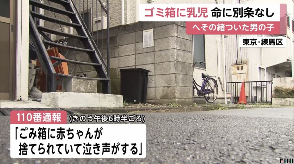 「ゴミ箱に赤ちゃんが捨てられ泣き声が…」男の赤ちゃん裸でへその緒がついた状態で見つかる