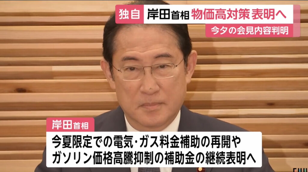 【政府】夏の電気代安くなる!岸田首相が電気料金補助の再開や年金生活者への給付金など物価高対策を表明へ