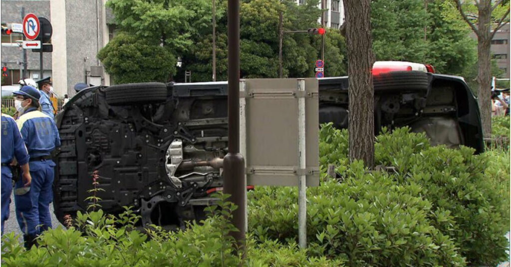 議員会館前でひき逃げの乗用車が総理官邸前で横転…運転手の身柄は確保 横断歩道を歩いていた男性はね逃走