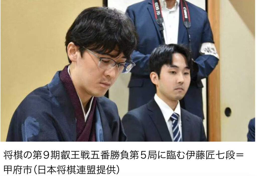 1: 朝一から閉店までφ ★ 2024/06/20(木) 18:40:05.61 ID:KIuii8wm9 2024/06/20 18:35 将棋の伊藤匠七段(21)が20日、甲府市の常磐ホテルで指された第9期叡王戦五番勝負第5局で後手の藤井聡太叡王(21)=8冠=を破り、対戦成績3勝2敗で叡王位... -