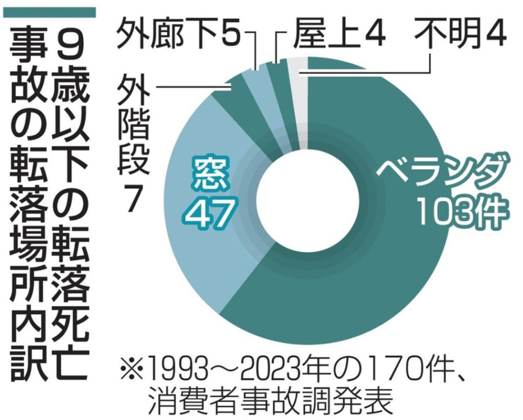 【調査】31年間で子どもの転落死170件…ベランダ6割、4歳までが多く、5歳以上になると急激に減少 消費者事故調