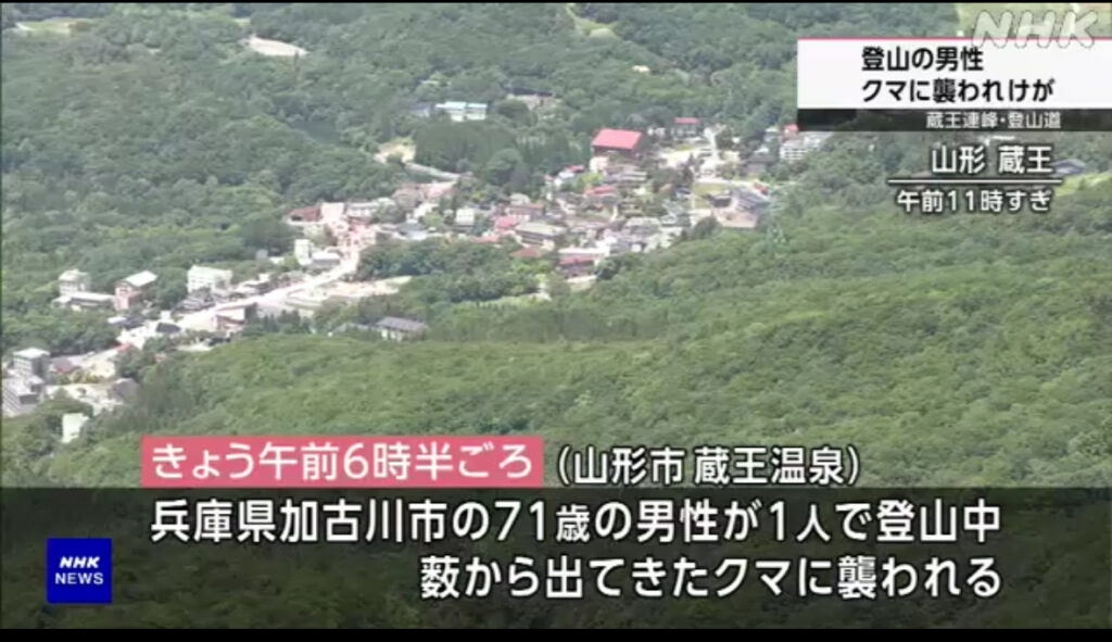 山形 蔵王連峰 登山中の男性がクマに襲われけが