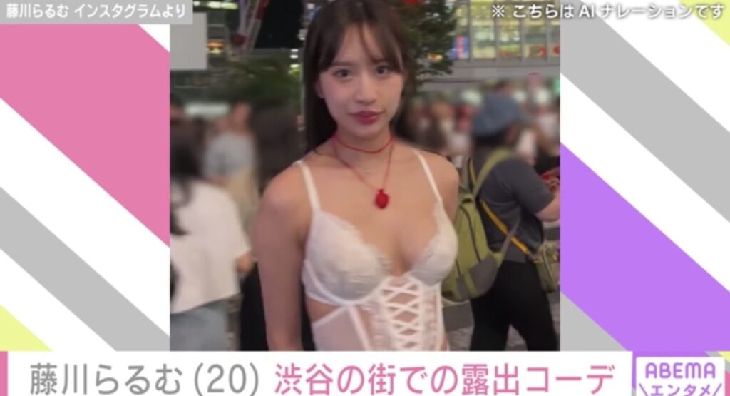 【モデル】露出コーデが賛否を呼んだモデル・藤川らるむ、渋谷の街で大胆露出コーデ披露「目のやり場に困るけど見てしまう」「下着にしか見えない」の声
