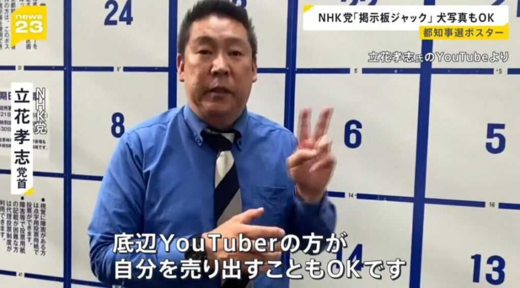 NHK党、都知事選ポスター枠を「販売」、犬猫キャバ嬢ホスト底辺YouTuber、なんでもOK