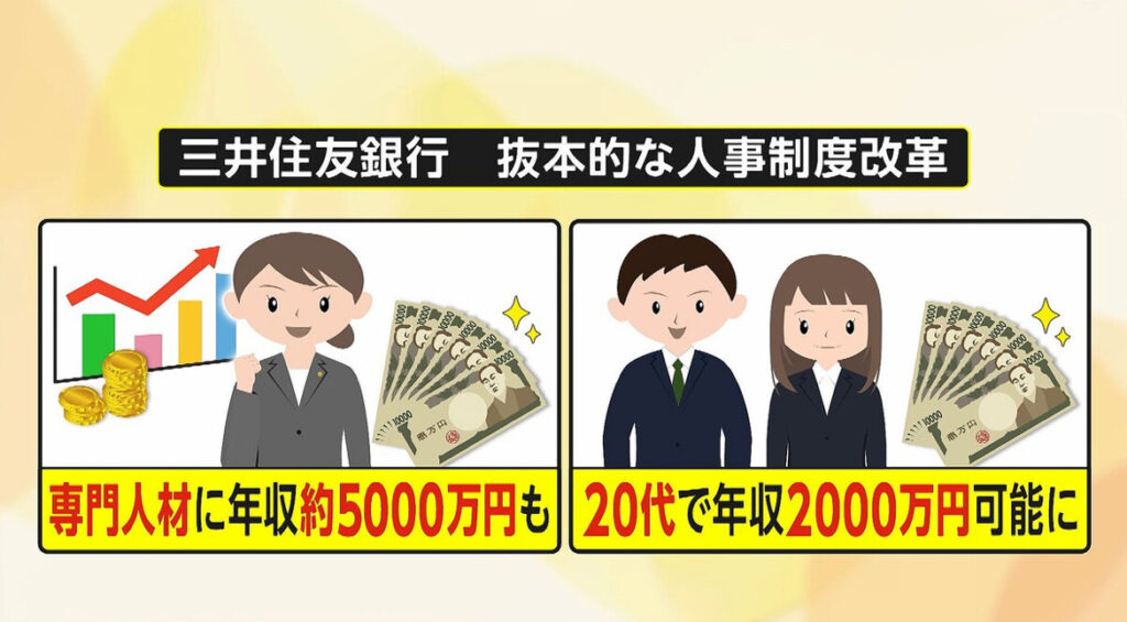 三井住友銀行、年功序列を廃止 20代で年収2000万円