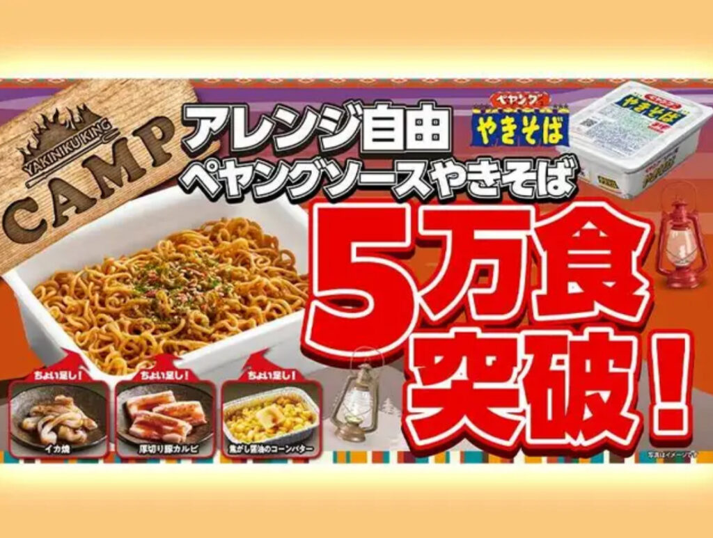 1: Gecko ★ 2024/06/18(火) 12:29:12.38 ID:JchI6ftQ9 物語コーポレーションの焼き肉チェーン「焼肉きんぐ」は、2024年3月から春期間限定の「CAMPフェア」を開催。同フェア内のメニューにまるか食品(群馬県伊勢崎市)のインスタント焼きそば「ペヤング」... -