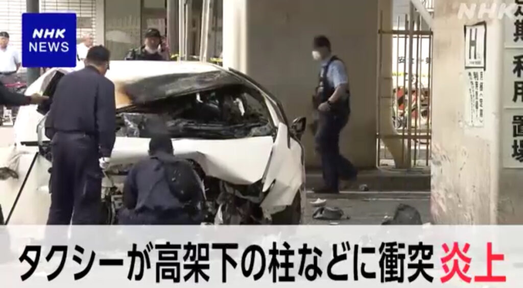 【炎上】大阪 淀川区 タクシー衝突事故で運転手死亡 破片当たり2人けが…