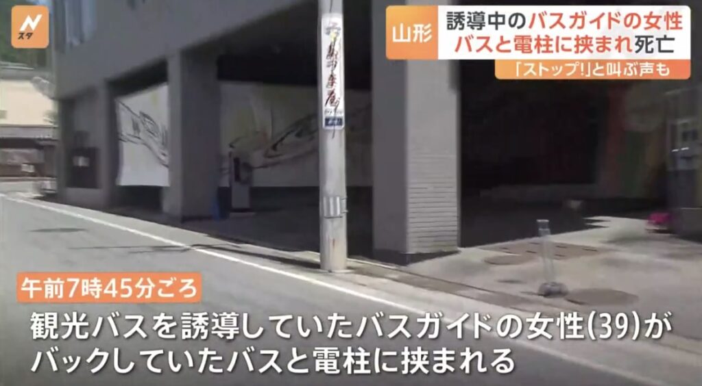 現場では「ストップ!」と叫んだ声が… 観光バスと電柱に挟まれバスガイドの女性が死亡 山形・上山市