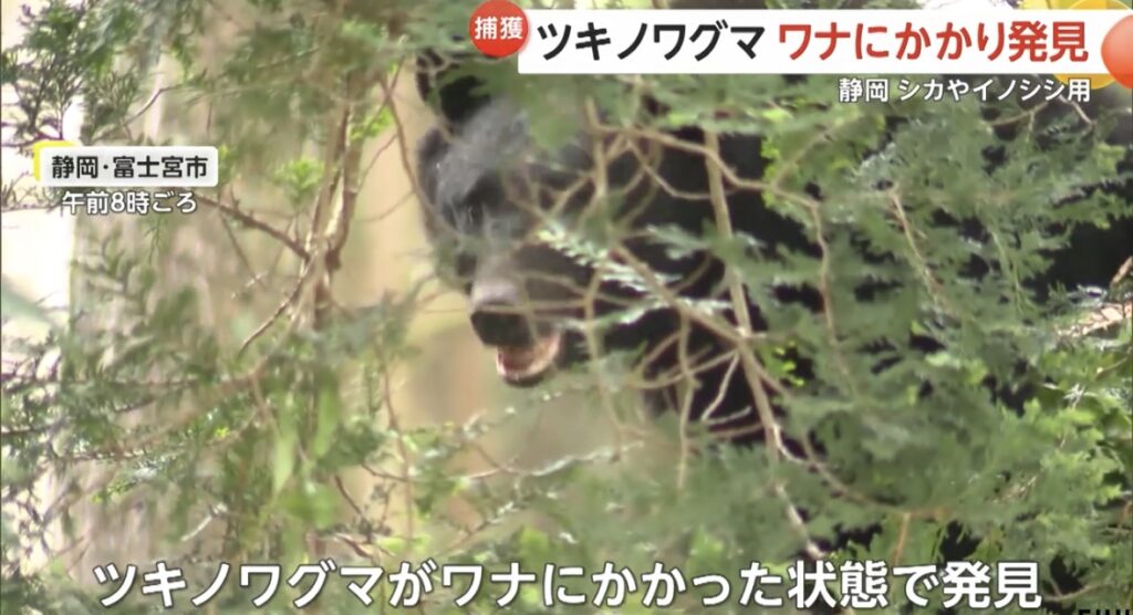 【クマ】ツキノワグマを捕獲 シカ・イノシシ用のワナにかかり発見 静岡・富士宮市