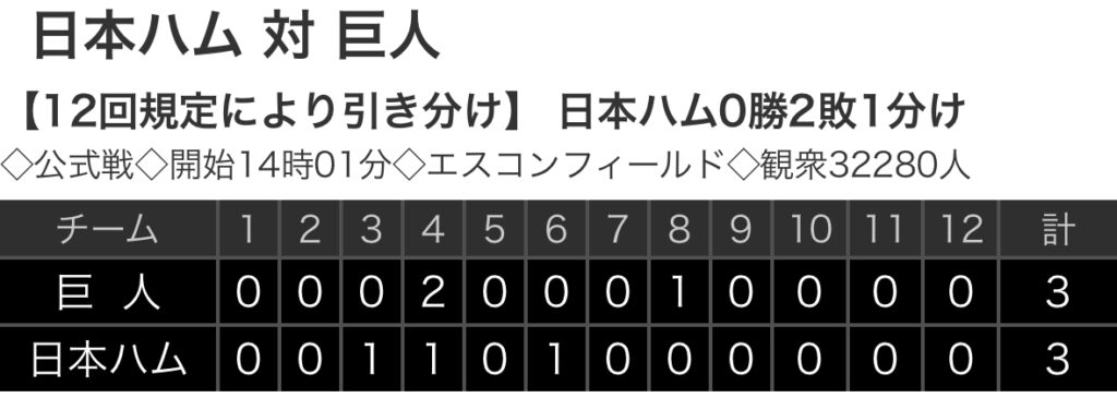 【野球】交流戦 F 3-3 G [6/16] 日本ハム-巨人は延長12回引き分け