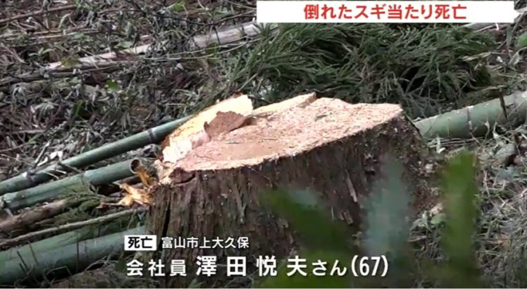 【富山】直径約65センチのスギが当たって死亡 男性会社員がスギ伐採中 切り株にあたって倒れる方向変わったか