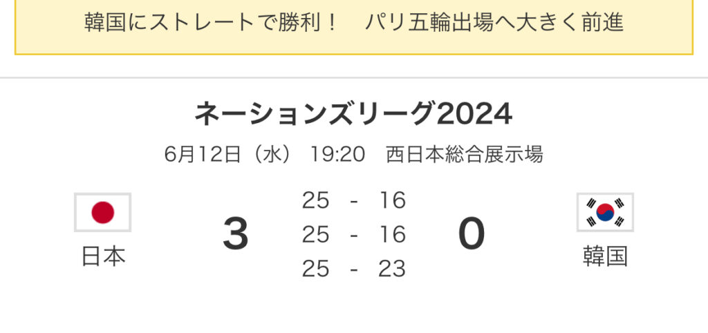 1: @動物園φ ★ 警備員[Lv.37] 2024/06/12(水) 20:41:19.55 ID:XAJi8cCF 日本 3-0 韓国 25-16 25-16 25-23 https://sports.yahoo.co.jp/contents/16168 引用元: ・【国際】女子バレー日本vs韓国 [2024/06/12] [動物園φ★]2: <丶`∀´>(´・ω・`)(...