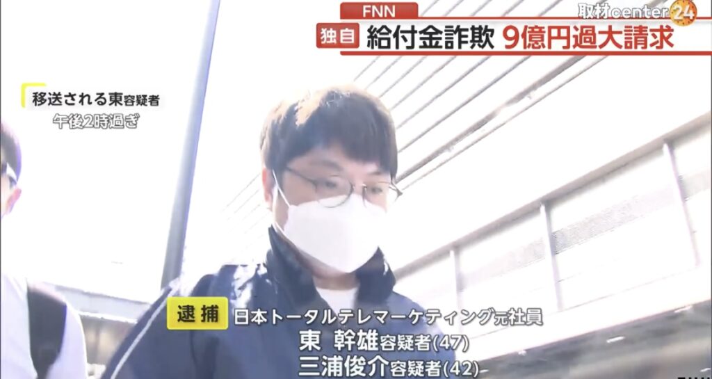 1: Gecko ★ 2024/06/11(火) 22:35:01.05 ID:x4B1WaVZ9 新型コロナワクチン接種のコールセンターの業務委託料めぐり、9億円規模の過大請求をしたとして、男2人が逮捕された。 詐欺の疑いで逮捕された「日本トータルテレマーケティング」の元社員・東幹雄容... -
