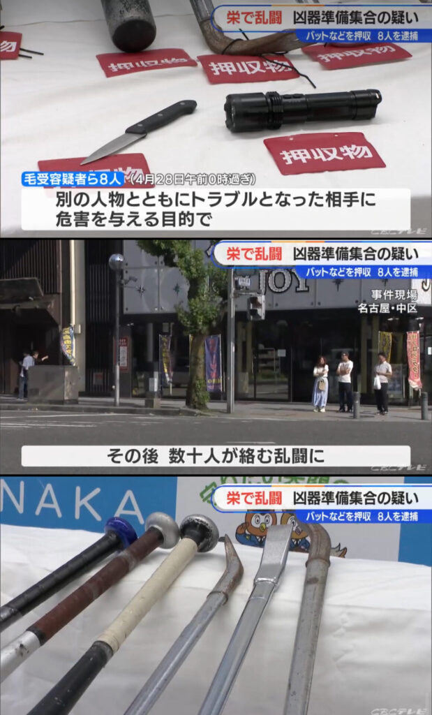 【名古屋】刃物や金属バットなど”凶器”を準備し集まった疑い 8人を逮捕 乱闘でけが人も 不良グループ同士のトラブルきっかけか