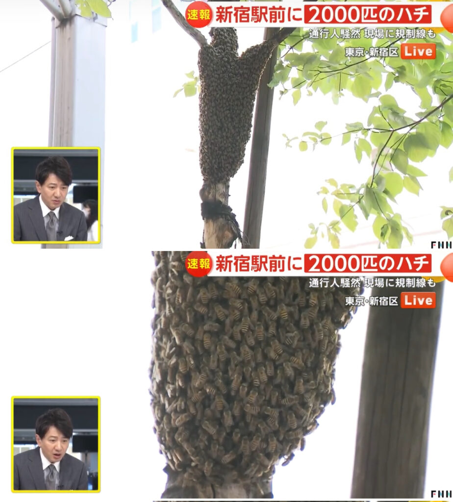 【蜂】新宿駅西口付近に“ミツバチ2000匹”大量発生 現場に規制線も…