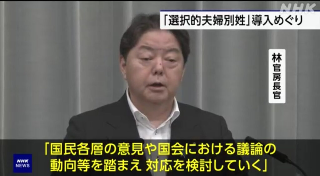 “選択的夫婦別姓の導入 国民の意見踏まえ検討” 林官房長官… 立民 岡田幹事長「自民の反対理由わからず 説明すべき」