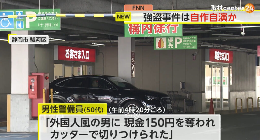 【静岡】警備員の50代男性「外国人風の男に現金150円を奪われた」強盗の通報は“自作自演”か 防カメには1人でいる様子映る 静岡市