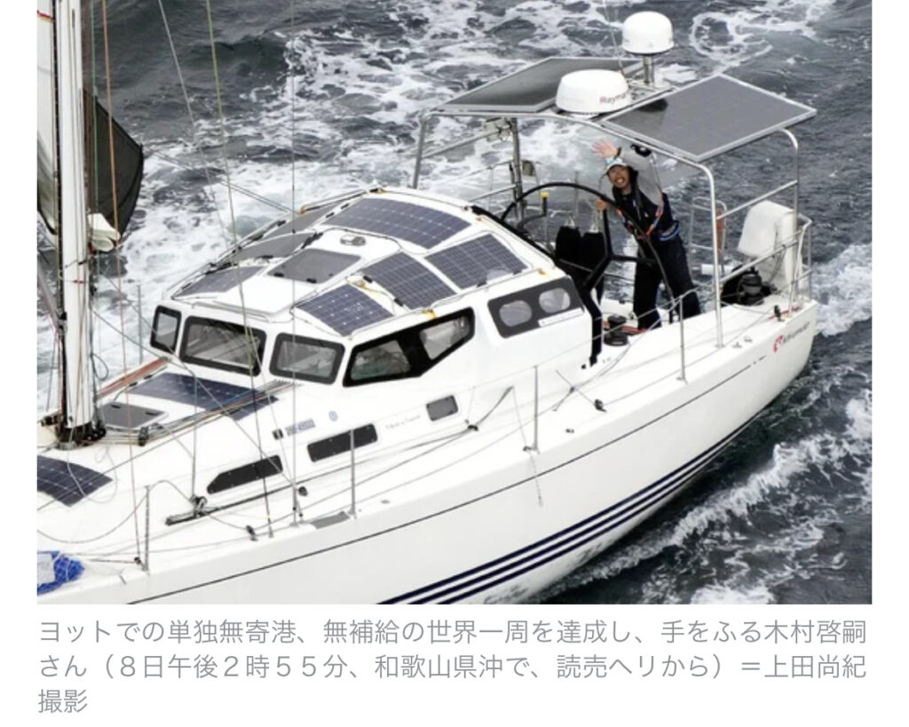 1: 朝一から閉店までφ ★ 2024/06/08(土) 19:47:01.13 ID:RyPw35H19 2024/06/08 15:31 ヨットでの単独無寄港、無補給の世界一周に挑戦していた兵庫県西宮市の元自衛官・木村啓嗣さん(24)が8日午後2時40分頃、ゴールとする和歌山県・日ノ御埼沖の... -