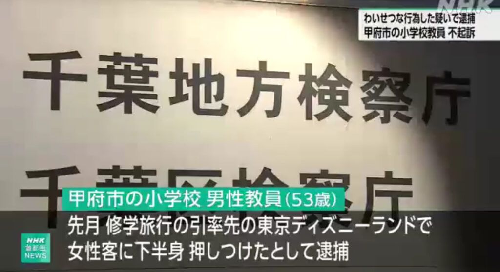 ディズニーランドで引率中にわいせつ行為の容疑で逮捕の教員 不起訴に 千葉地検